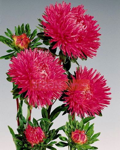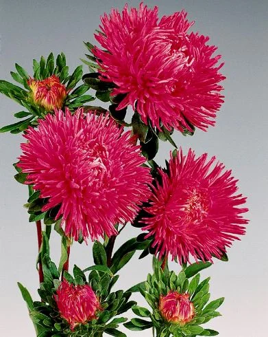 Астра голчаста Гала (Callistephus chinensis Gala). Ранній сорт айстри для зрізу, який стійкий до хвороб. Кущ у вигляді піраміди досягає у висоту 70-80 см з великими, кулястими, густими та махровими квітконосами. Посів проводять у березні-квітні, а у відкритий ґрунт пересаджують у середині травня. Також можна посіяти провесною або під зиму на відкритий грунт. У вирощуванні не вимагає підвищеної уваги.
