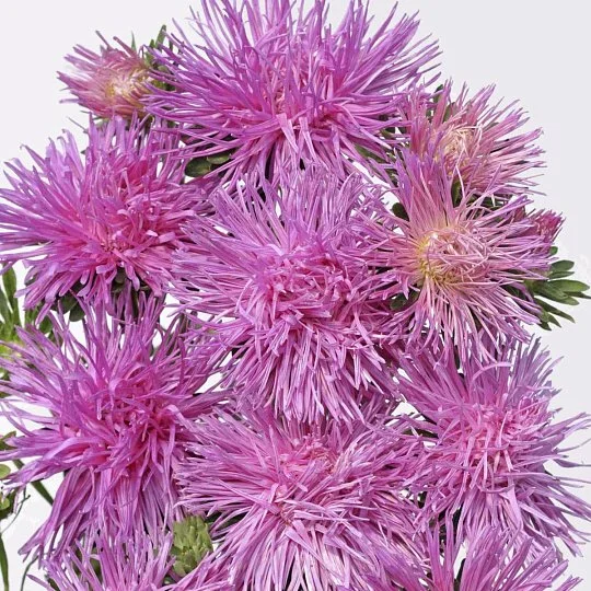 Астра китайська Валькірія (Callistephus chinensis Valkyrie). Крупноквіткова, рясно квітуча серія астр з променистою формою квітки. Кущ пірамідальної форми, висотою 60-65см. Стебла довгі та міцні. Квітка з довгих, закручених і згорнутих у трубочку пелюсток сягає діаметру 12-14 см. У захищеному ґрунті можна вирощувати як навесні, так і на осені. На розсаду насіння висівають у березні – квітні. Пікірування проводять у фазі 2-3 справжніх листочків за схемою 5x5. У відкритий ґрунт рослини висаджують у середині травня. При безрозсадному способі насіння висівають на постійне місце провесною або під зиму. Невибаглива культура добре реагує на підживлення. Використовується для озеленення присадибних ділянок та високоякісного зрізу. Довгий час квіти зберігають декоративність у вазі.