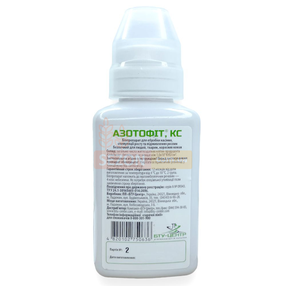Азот - один з основних елементів, необхідних для зростання та розвитку рослин. Недолік азоту може призвести до затримки росту, блідого листя та опадання. Азотофіт-р містить живі клітини та бактерії Azotobacter chroococcum, які звільняють азот з атмосфери та переводять його у доступну для рослин форму.