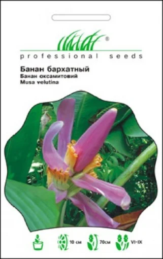 Банан оксамитовий (Musa Velutina) – кімнатна декоративна рослина з рожевими плодами. Любить дуже багато тепла, світла та підвищену вологість. Рослина вимагає рясного поливу та підживлення. Висота рослини: 50-60 см.