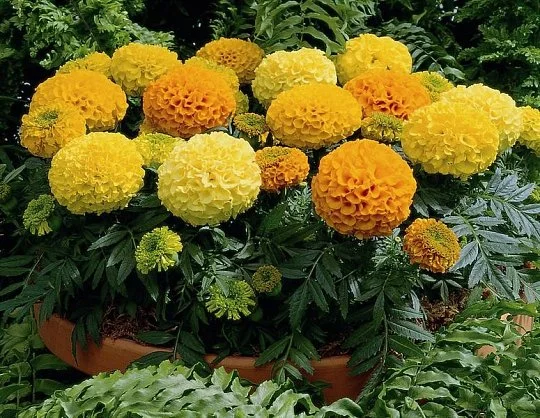Чорнобривці Антигуа - компактний гібрид, що досягає в ширину і висоту 25-30 см. Гібрид толерантний до тривалості світлового дня. Квітки за розміром досягають 8-10 см у діаметрі, махрові та яскравих забарвлень. На початку квітня насіння висівають на розсаду, вже за 5-6 днів з'являються сходи. У відкритий ґрунт саджають у травні.