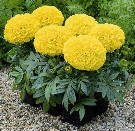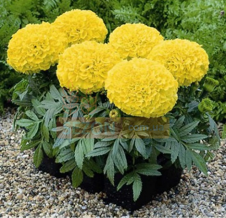 Чорнобривці (Тагетес) прямостоячі Еквінокс (Tagetes erecta Ekvinoks) - однорічна рослина. Прекрасна прикраса клумби. Кущі заввишки 25-30 см, формують великі, махрові суцвіття лимонного кольору. Рослина швидкозростаюча, тепло-і світлолюбна, невибаглива до вологи та грунту. Тагетес рекомендується для прикрашання клумб, рабаток, ваз та бордюрів.