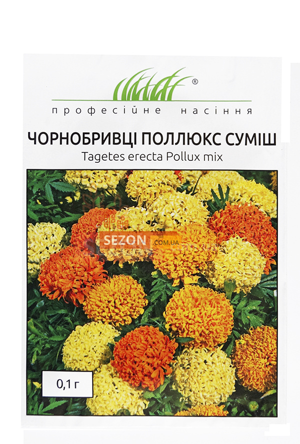 Чорнобривці Поллюкс - однорічна квітка, з великим квітконосом, яке досягає 10 см в діаметрі. Рослина цвіте починаючи з червня до жовтня, теплолюбна. Висівають на розсаду у квітні, у відкриту землю у травні на 1,5-2 см глибини.