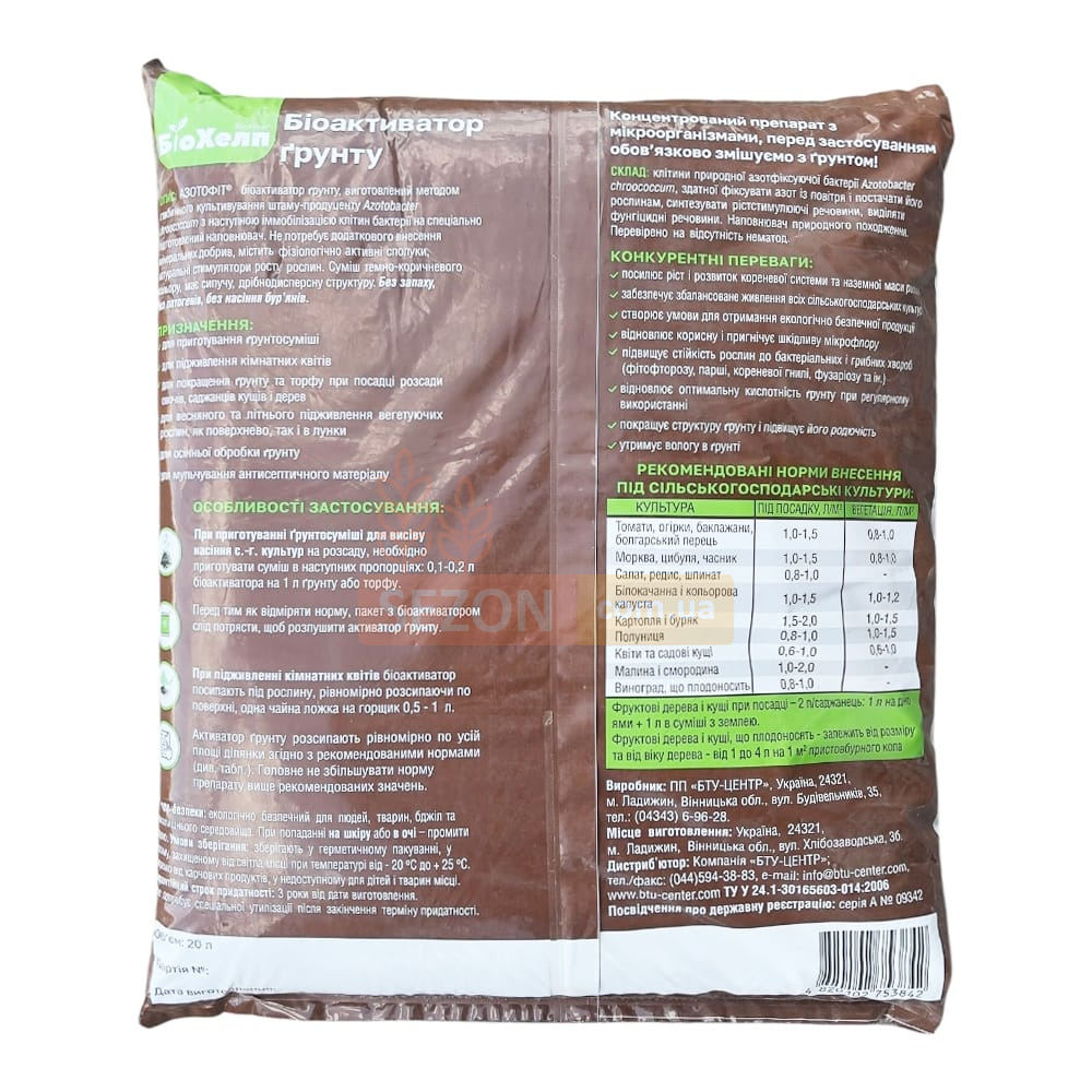 Характеристики БиоХелп биоактиватор почвы универсальный 20 л, Живая земля
