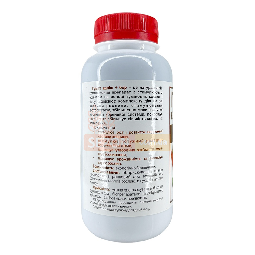Гумат калію + бор-потужний каталізатор біохімічних процесів у ґрунті, рослині та їх біологічній активності, призначений для стимуляції росту та розвитку кореневої системи та вегетативної маси рослин.
