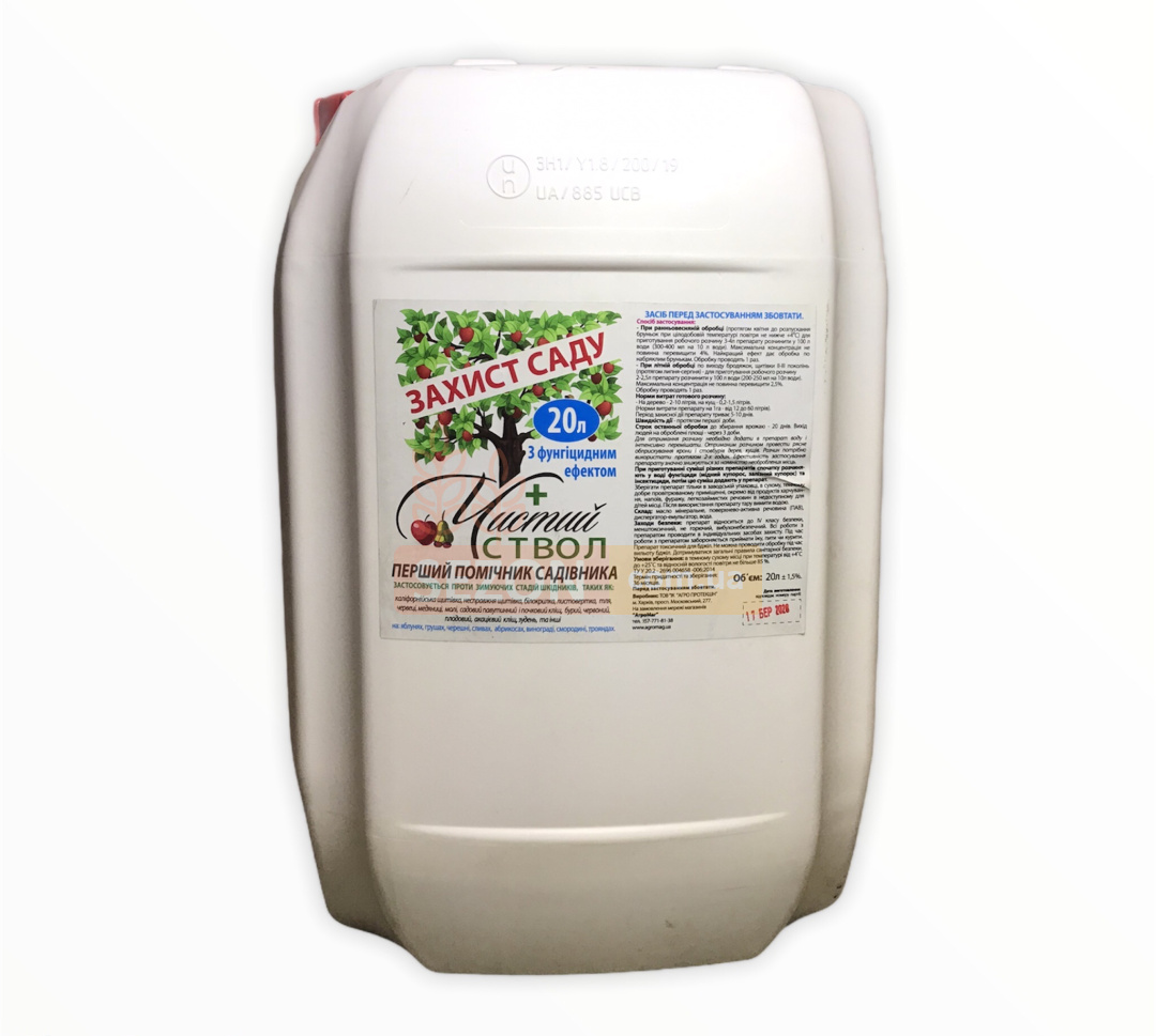 Чистий стовбур – це інноваційний інсектофунгіцид, розроблений компанією Agro Protection для комплексного захисту плодових дерев, ягідних кущів та декоративних рослин. Завдяки унікальному складу, що містить мінеральну олію, поверхнево-активні речовини та диспергуючий емульгатор, препарат ефективно знищує зимуючі стадії комах, запобігає розвитку грибкових захворювань і захищає сад від шкідників.