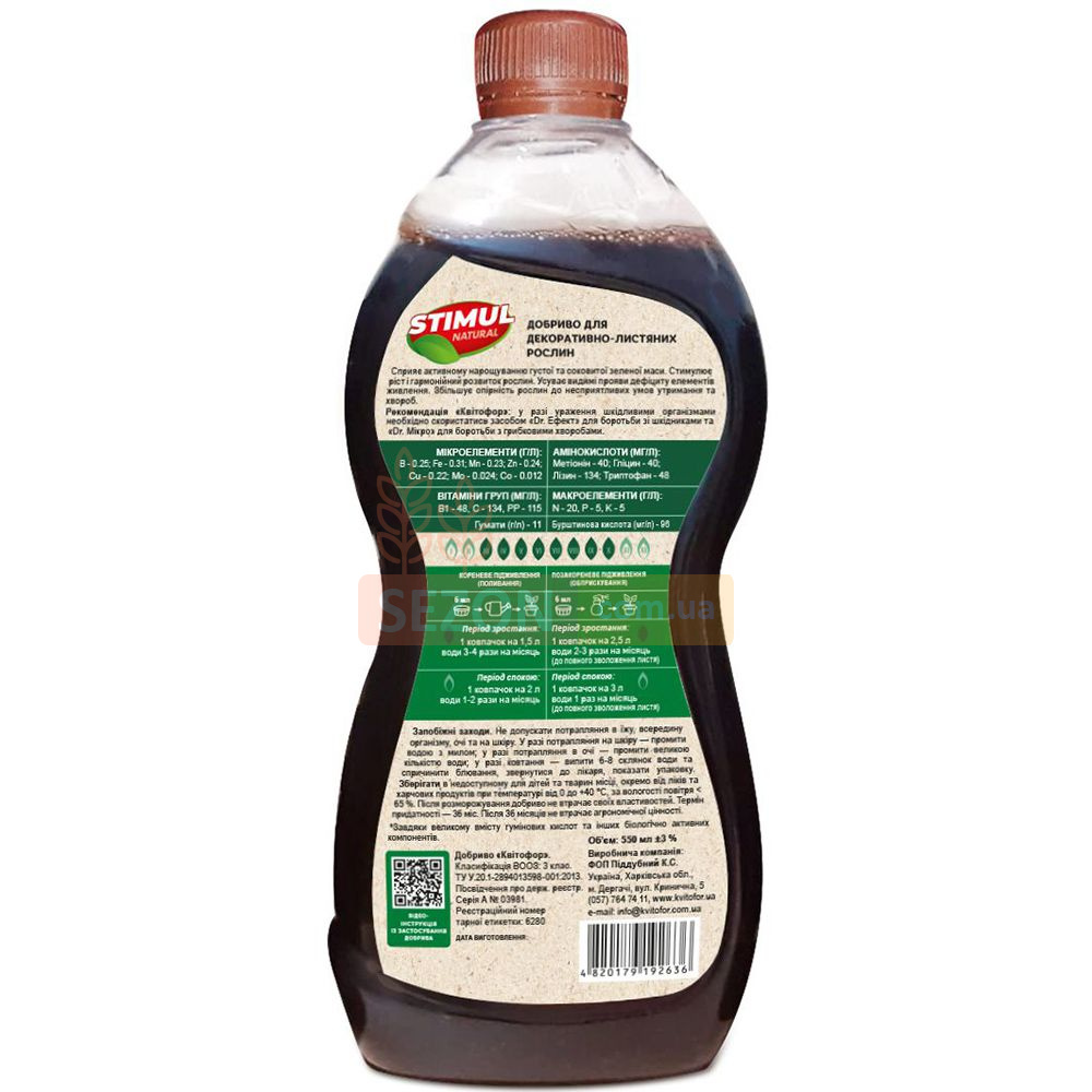 STIMUL NATURAL створене для повноцінного живлення декоративно-листяних культур. Збалансована формула підтримує ріст рослин, сприяє розвитку насичено-зеленого листя та допомагає зберігати декоративність упродовж усього сезону.