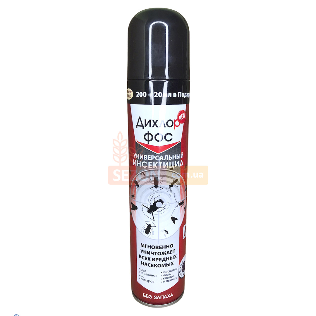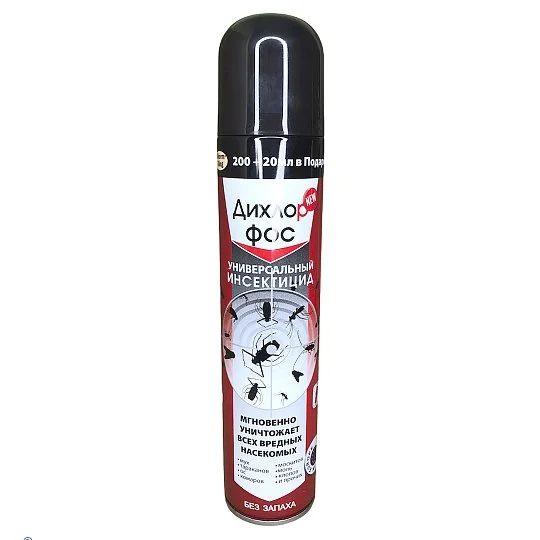 Дихлорфос - універсальний інсектицидний засіб для знищення мух, комарів, молі, тарганів, мурах, бліх, клопів та інших комах, що літають і повзають.