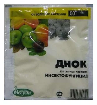 Днок – системно-контактний інсектицид широкого спектру дії. Має високу ефективність в боротьбі з комахами. Препарат застосовується для захисту плодово-ягідних культур та виноградників від кліщів, щитівок, мідянки, листовійок, парші, молі, попелиці. Інсектицид Днок можна комбінувати практично з усіма рідкими та порошковими препаратами, фунгіцидами та органічними інсектицидами. Період захисної дії препарату – 10 днів.