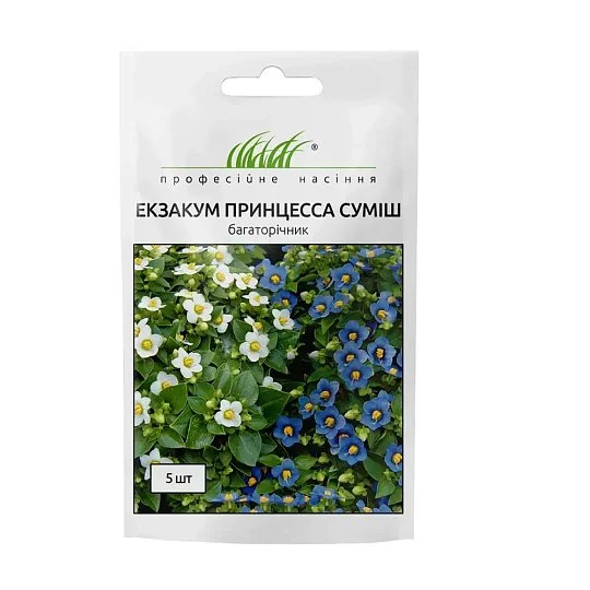 Екзакум Прінцеса — компактна декоративна рослина з витонченими білими та синіми квіточками й легким приємним ароматом. Висота рослини — 25–30 см. Цвітіння настає через 5–7 місяців після посадки. За умови регулярного догляду екзакум формує пишний акуратний кущик, який довго зберігає декоративність.