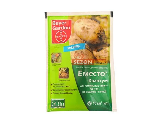 Еместо Квантум – інноваційний протруйник інсектицидно-фунгіцидної дії для захисту картоплі від шкідників та хвороби. Діючі речовини: клотіанідин та пенфлуфен. Спектр активності: колорадський жук, дротяник, несправжній дротяник, личинки хруща, цикадки, попелиці, трипса, різоктоніоз (побічна дія проти звичайної сріблястої парші). Інсектицидна речовина, що діє, відрізняється високою рухливістю в рослині і низькою міграцією в нижні шари грунту.