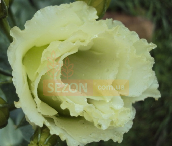 Еустома (Eustoma grandiflorum) АВС F1 - однорічна великоквіткова рослина. Висота рослини 90-110 см. Квітки махрові, білого кольору із зеленуватим відтінком, схожі на бутони троянд. Цвіте рясно та тривало. Рослина сонцелюбна, віддає перевагу окультуреним грунтам, вимагає регулярного поливу і обприскування. Відмінно підходить для зрізу. Цвіте з липня до серпня.