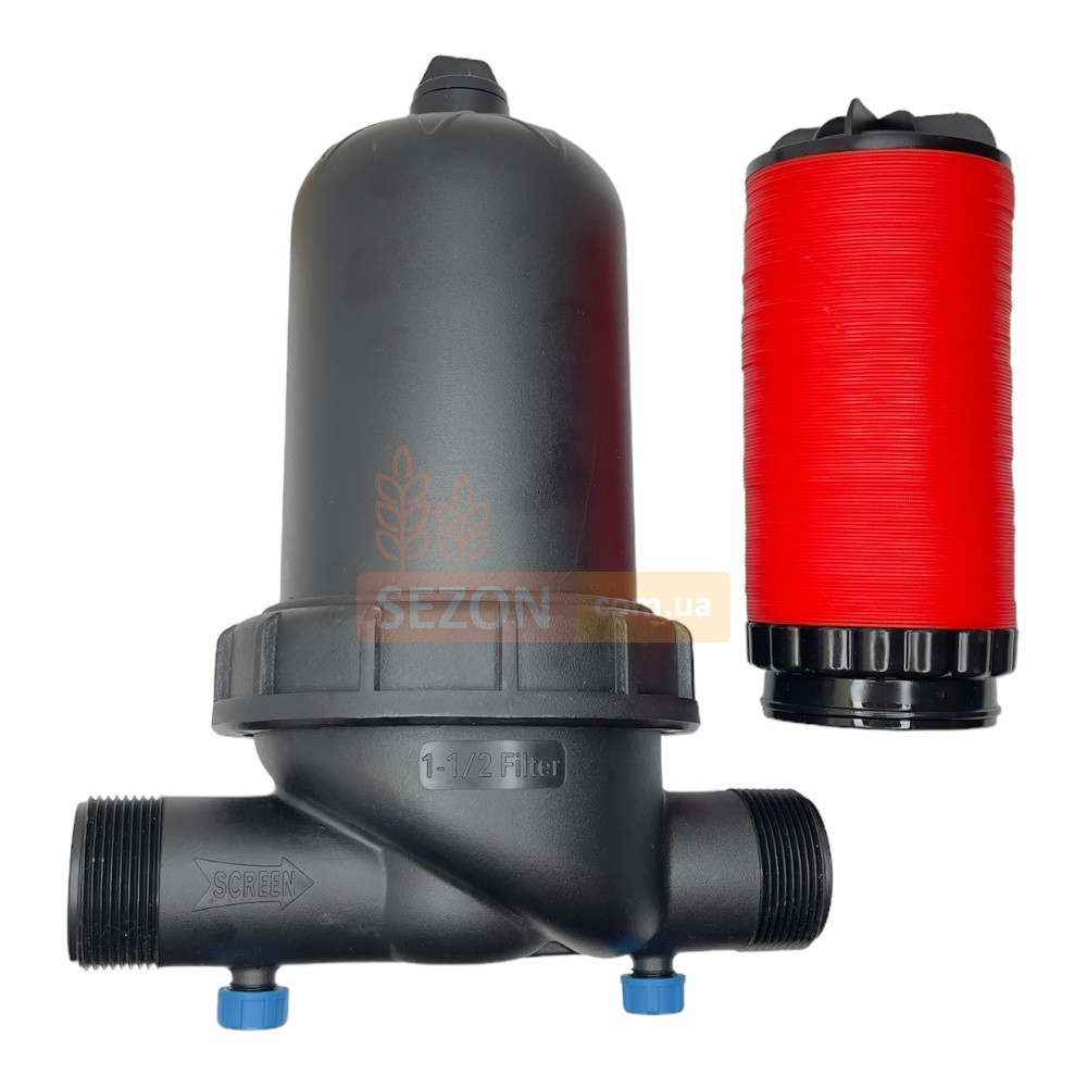 Захищає дощувачі, крапельниці, крапельну стрічку та крапельну трубку від засмічення, збільшує термін служби. Встановлюється фільтр в розрив магістрального трубопроводу за допомогою різьбового з'єднання із зовнішнім різьбленням діаметром 40 мм (1,1/2"). Рекомендований робочий тиск в системі 2-3 атмосфери. х 255 х 97 мм Корпус фільтра виготовлений з високоякісного пластику стійкого до механічних навантажень, перепадів температури та ультрафіолетового випромінювання.