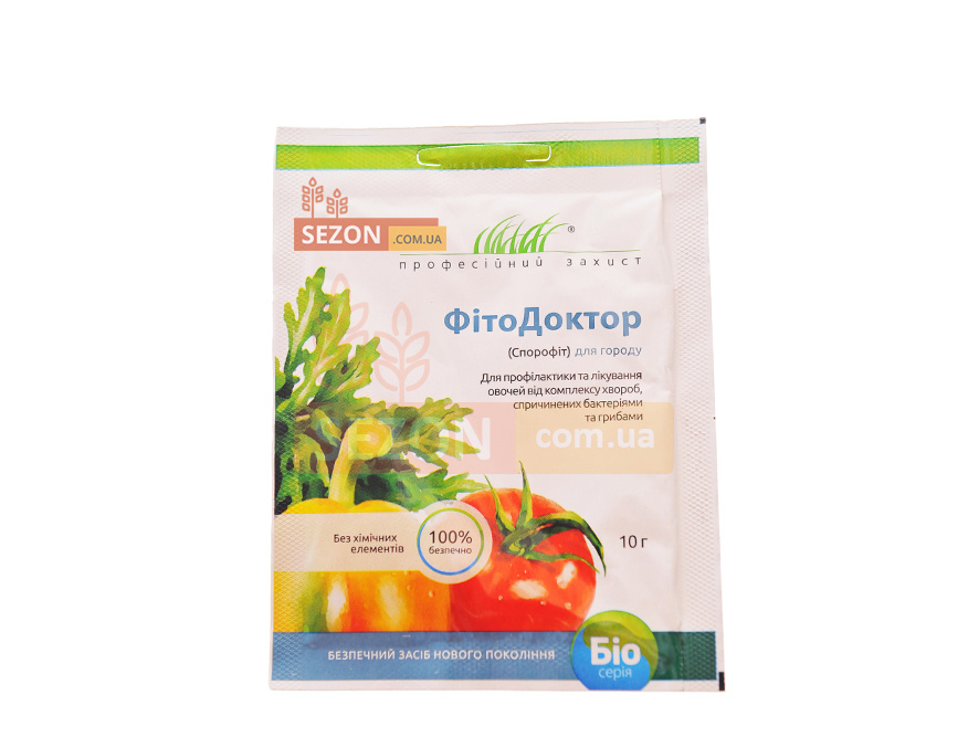 ФітоДоктор для городу – біологічний фунгіцид широкого спектру дії. Екологічно чистий препарат пролонгованої дії, призначений для профілактики та лікування сільськогосподарських культур від грибкових та бактеріальних захворювань. Основа препарату – жива спорова бактерія. Спектр активності: фітофтороз, різоктоніоз, коренева гниль, в'янення, бактеріоз, пероноспороз, бура плямистість, борошниста роса. Регламент застосування: картопля, томати, капуста, огірки. Препарат використовується для замочування розсади. Безпечний для людини. Періоду очікування культур немає.