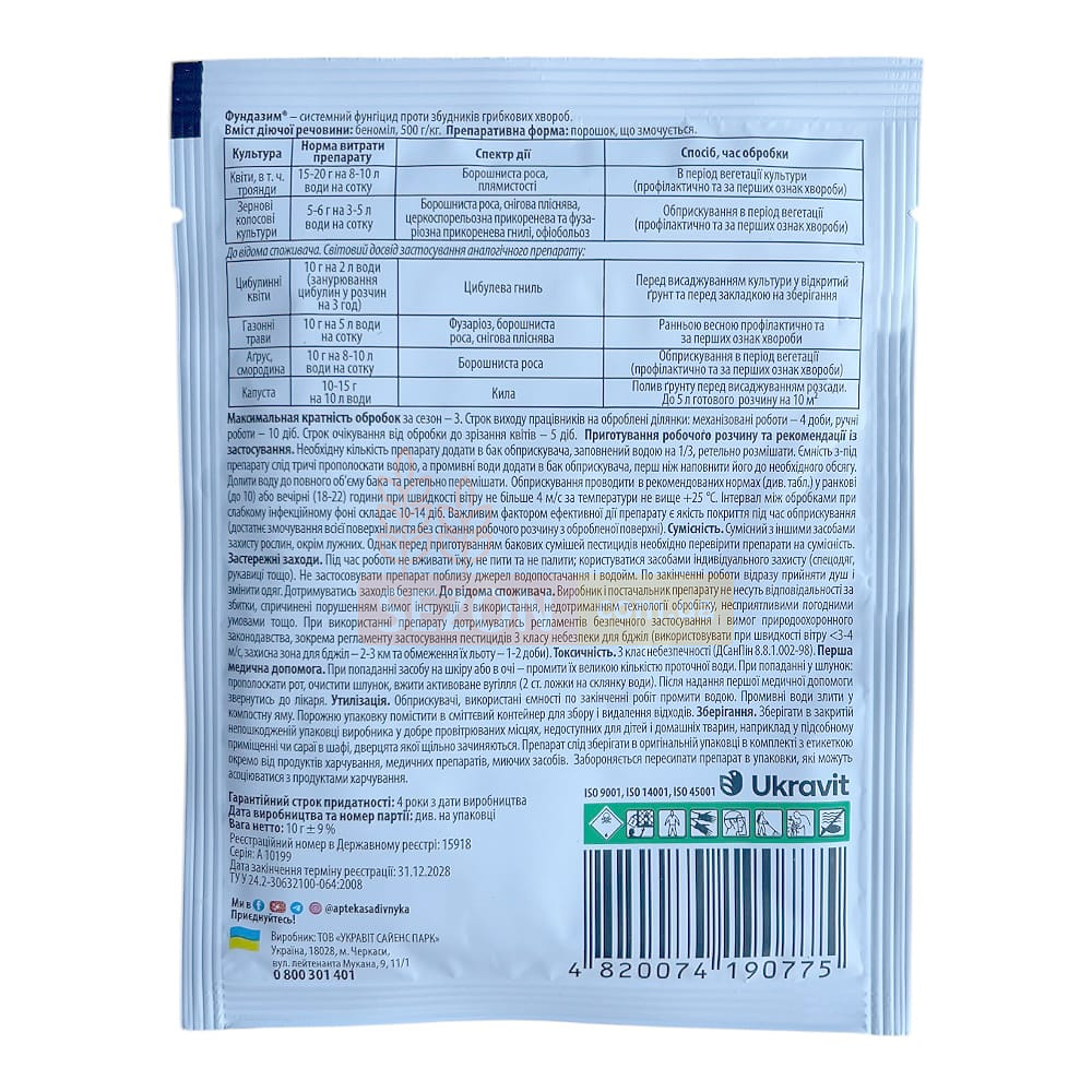 Ключові слова для SEO: Фундазим фунгіцид, захист рослин, беноміл, профілактичне лікування, боротьба з грибковими захворюваннями, борошниста роса, фузаріоз, цибулинні квіти, зернові культури, профілактика захворювань, фунгіцид для садівників.