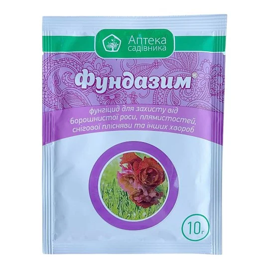 Фунгіцид Фундазим – це ефективний засіб захисту рослин і насіння від безлічі грибкових захворювань. Заснований на беномілі, препарат забезпечує комплексний захист як для вегетативних, так і для генеративних частин рослин, ефективно справляючись з різними захворюваннями. Фундазим може використовуватись для профілактики і лікування борошнистої роси, фузаріозу, а також для захисту цибулинних квітів і зернових культур.