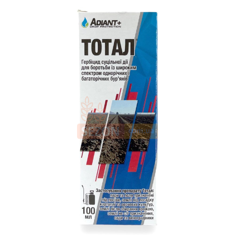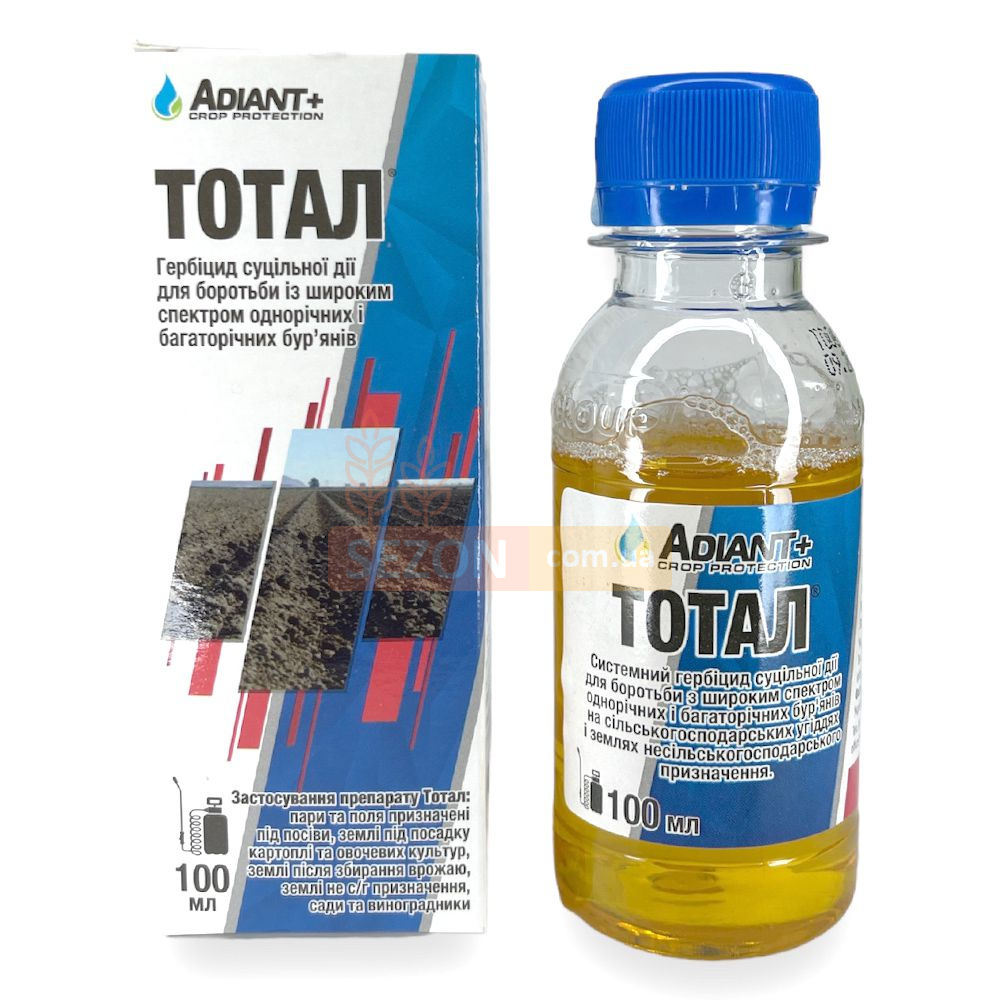 Гербіцид Тотал Адіант Плюс - це неселективний гербіцид суцільної дії, який використовується для знищення широкого спектру однорічних та багаторічних бур'янів на сільськогосподарських ділянках, клумбах та доріжках.