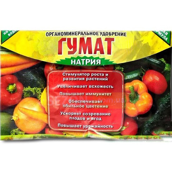 Органічно-мінеральне добриво, стимулятор росту рослин, має у своєму складі комплекс рухомих сполук гумінових та фульвокислот з азотом, фосфором, калієм та мікроелементами для підживлення овочевих, ягідних, квіткових та кімнатних рослин.