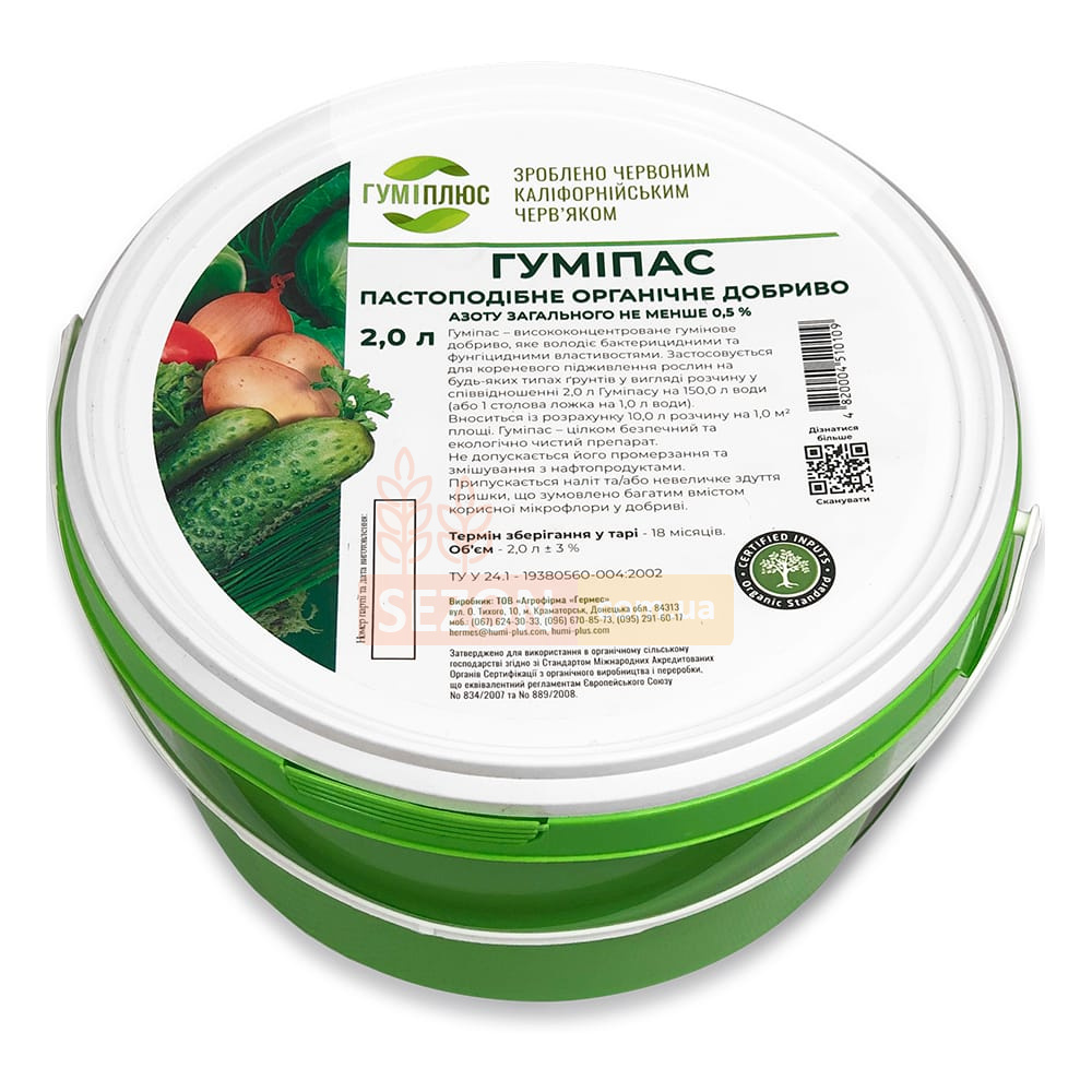 Гуміпас — це пастоподібне висококонцентроване гумінове добриво, що поєднує властивості стимулятора росту, природного фунгіциду та бактерицидного засобу. Завдяки багатому складу та високій біологічній активності, воно забезпечує комплексне живлення й захист рослин, покращує структуру ґрунту та сприяє отриманню екологічно чистої продукції.