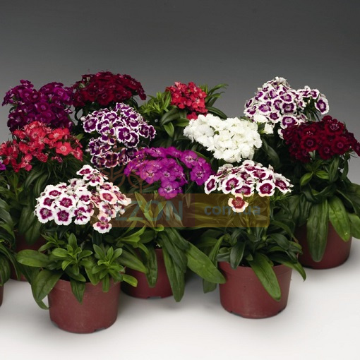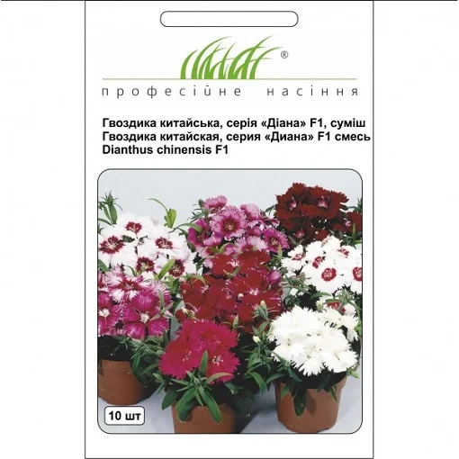 Гвоздика китайська (Dianthus chinensis Diana F1) – однорічна рослина, раннього періоду цвітіння. Має широкий спектр кольорів: від яскравих однотонних до двоколірних. Гвоздика цвіте рясно протягом тривалого часу – з початку літа до заморозків. Рослина невибаглива, любить сонячні місця, виносить півтінь. Морозостійко. Популярно при оформленні клумб та бордюрів. Чудово виглядає при вирощуванні в горщиках та контейнерах.