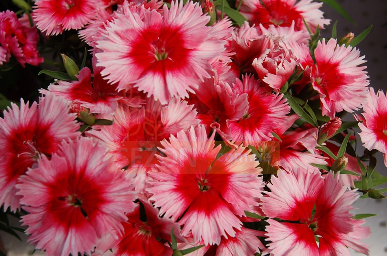 Гвоздика китайська (Dianthus chinensis Diana F1) – однорічна рослина, раннього періоду цвітіння. Має широкий спектр кольорів: від яскравих однотонних до двоколірних. Гвоздика цвіте рясно протягом тривалого часу – з початку літа до заморозків. Рослина невибаглива, любить сонячні місця, виносить півтінь. Морозостійко. Популярно при оформленні клумб та бордюрів. Чудово виглядає при вирощуванні в горщиках та контейнерах.