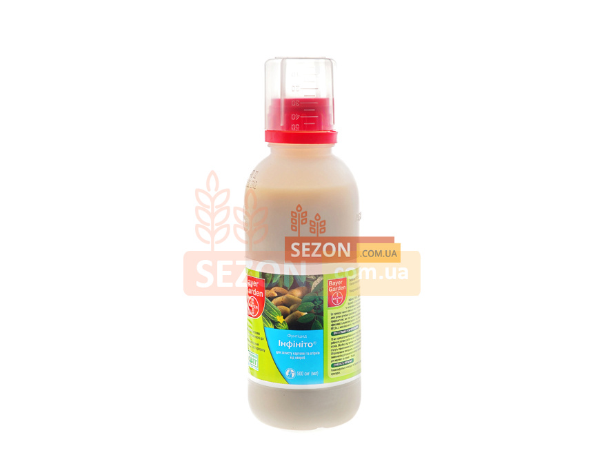 Інфініто – високоефективний двокомпонентний фунгіцид системної дії. Препарат відмінно захищає картоплю та овочеві культури (огірки, томати, капуста) від фітофторозу, пероноспорозу, хибної борошнистої роси. Використовується як профілактики захворювань, так лікування. Фунгіцид ефективний тривалий період. Стійкий для змивання атмосферними опадами. Флуопіколід, пропомокарб гідрохлорид. Препаративна форма: концентрат суспензії. Термін очікування: для картоплі, огірків – 10 днів, для капусти – 14 днів.