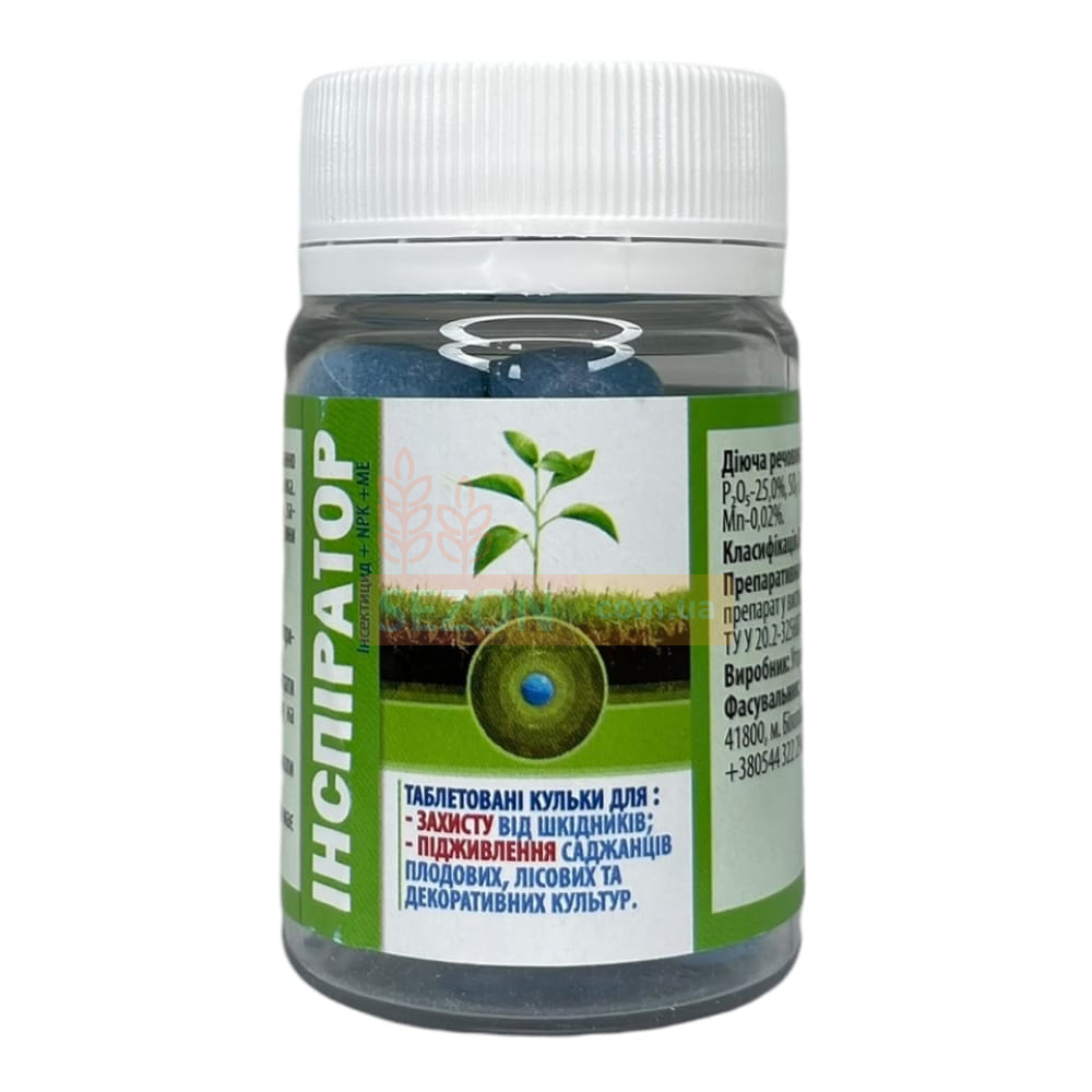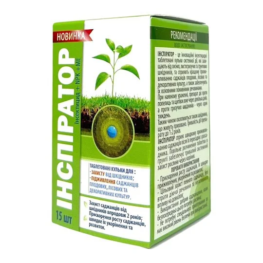 Інсектицид «Інспіратор» — це системний засіб у формі таблеток, який ефективно бореться з комахами-шкідниками та одночасно насичує рослини важливими мікроелементами, сприяючи їх росту та розвитку. Він ідеально підходить для захисту плодових дерев, хвойних та декоративних культур.