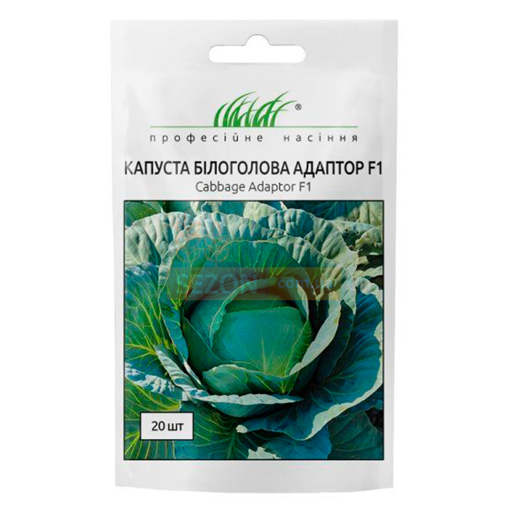 Адаптор F1 – середньопізній гібрид капусти білокачанної. Підходить для висіву у відкритий ґрунт. Формує компактні качани із щільною внутрішньою структурою. Капуста Адаптор вирощують для тривалого зберігання (до 7 місяців) та вживання у зимовий період. Чи не ушкоджується трипсом, стійкий до фузаріозу.