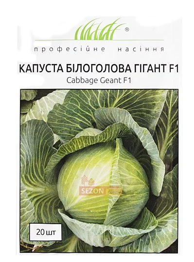Гігант F1 – середньопізній гібрид капусти білокачанної. Ця капуста універсального призначення підходить як для вживання у свіжому вигляді, так і для квашення. Маса качана 3-4 кг. Гібрид толерантний до трипсів, стійкий до фузаріозу.