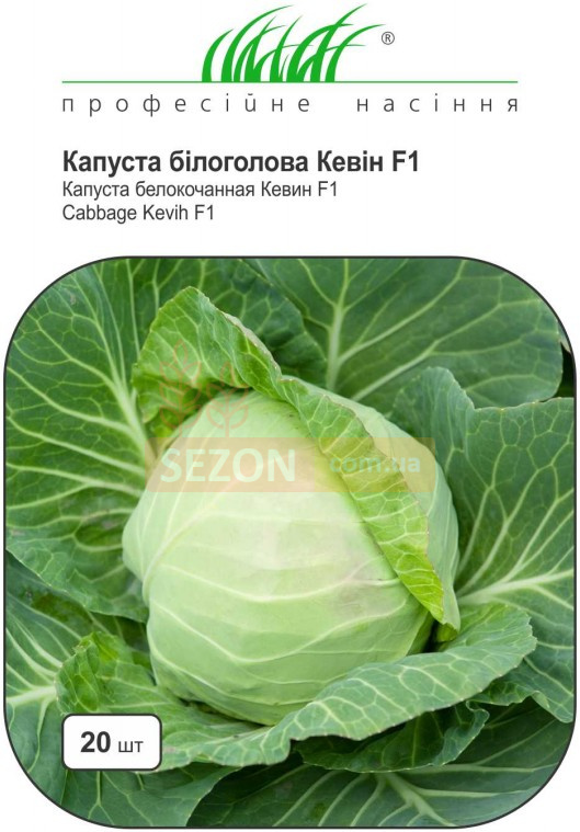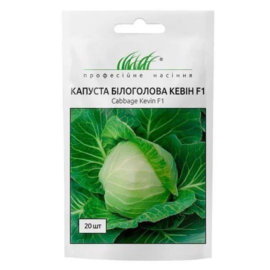 Кевін F1 – ранній гібрид білокачанної капусти. Період вегетації 48-52 дні. Формує округлий качан, масою 1,2-2 кг, щільної структури, світло-зеленого кольору. Гібрид з високим вмістом цукру та чудовими смаковими якостями. Кевін Ф1 стійкий до фузаріозу. Гібрид особливо ефективний під час вирощування під плівкою.