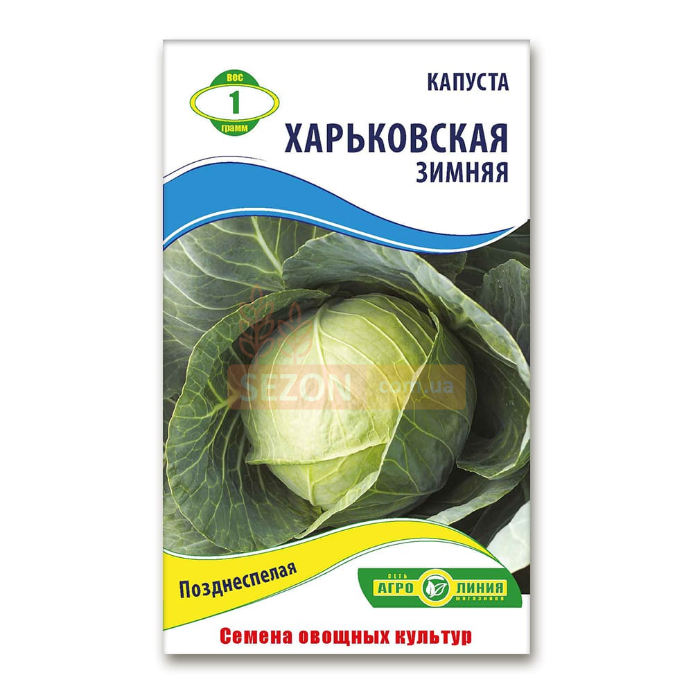 Опис:Капуста "Харківська зимова" - це пізньостиглий сорт, що ідеально підходить для вирощування в різних кліматичних умовах. Рослини утворюють розетки середнього розміру, при цьому качани досягають вражаючих розмірів з діаметром 80-110 см. Качани округло-плоскі або плоско-опуклі, мають привабливий зеленувато-білий колір. М'якуш щільний, не схильний до розтріскування, що забезпечує зручність зберігання та транспортування. Вага одного качана коливається від 2,5 до 3 кг.