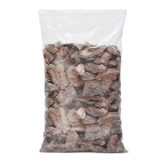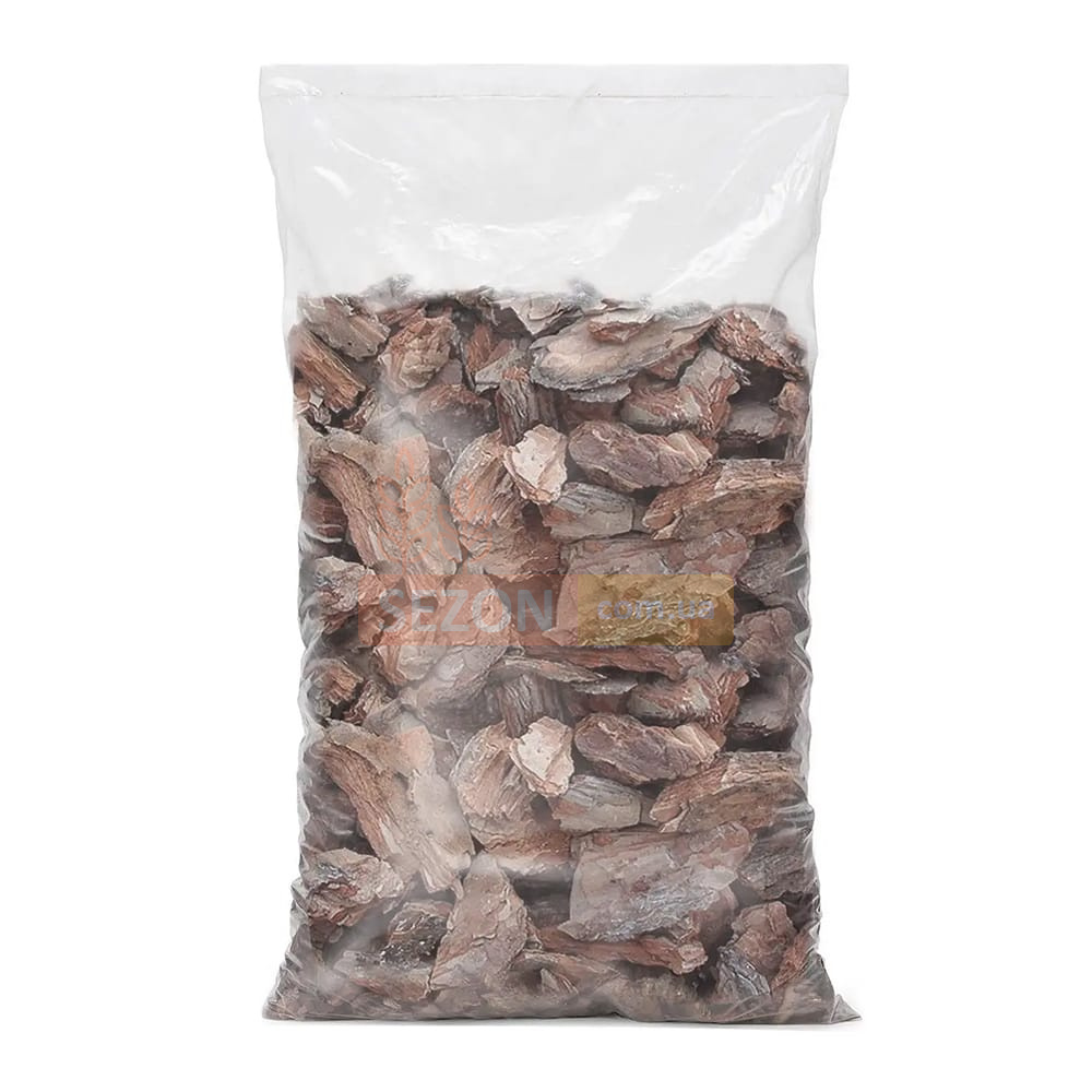 Дрібна кора підходить для горщикових рослин і дрібних квітників, середня — для мульчування клумб і пристовбурних кіл, велика — для декоративних композицій і садових доріжок.