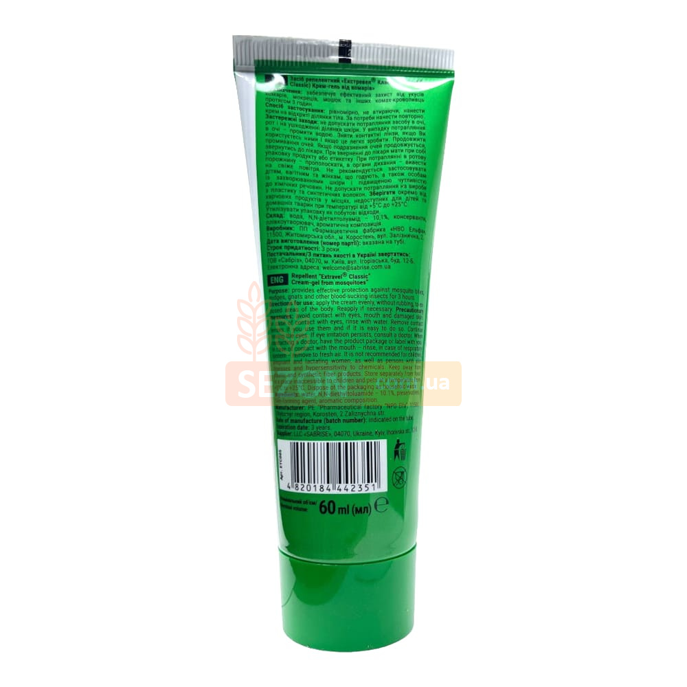 Надійний захист від комарів завжди під рукою — з крем-гелем Extravel Classic ви зможете спокійно насолоджуватись відпочинком на природі!