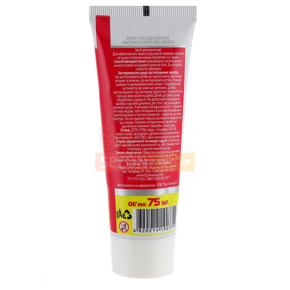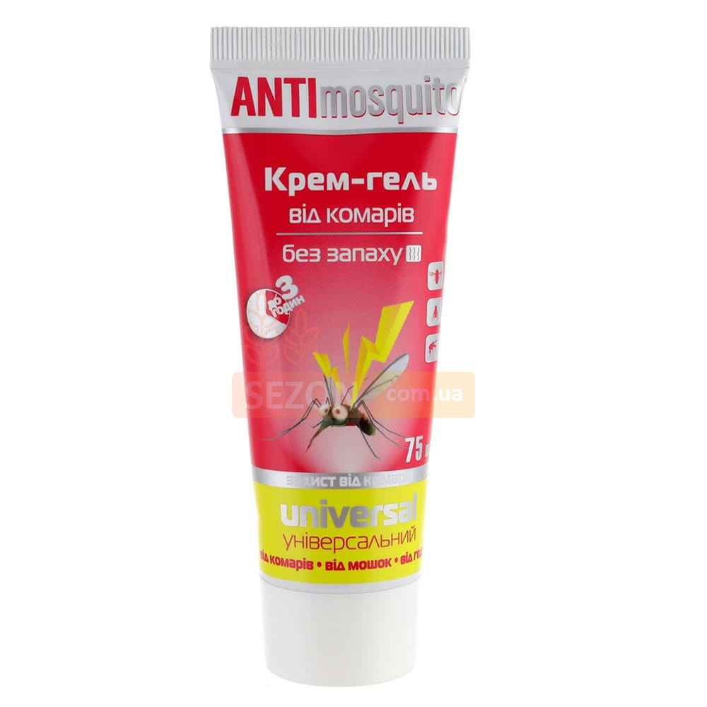 Крем-гель Anti mosquito — універсальний засіб для захисту від укусів комарів, москітів, мокреців і ґедзів. Він розроблений спеціально для використання на відкритому повітрі: у саду, на дачі, в лісі, під час риболовлі або прогулянок. Завдяки безпечній формулі без запаху препарат підходить як дорослим, так і дітям, забезпечуючи надійний захист до 3 годин.