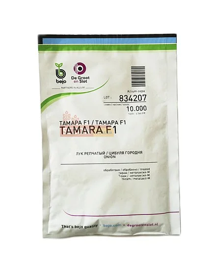 Тамара F1 - пізньостиглий гібрид цибулі для тривалого зберігання. Вегетаційний період 110-115 днів. Листова частина рослини добре розвинена, покрита восковим напиленням, добре захищає кореневу частину у спекотну сонячну погоду. Гібрид стійкий до посухи та фузаріозу. Формує округлі цибулини світло-коричневого кольору із щільними лусками, соковиті.