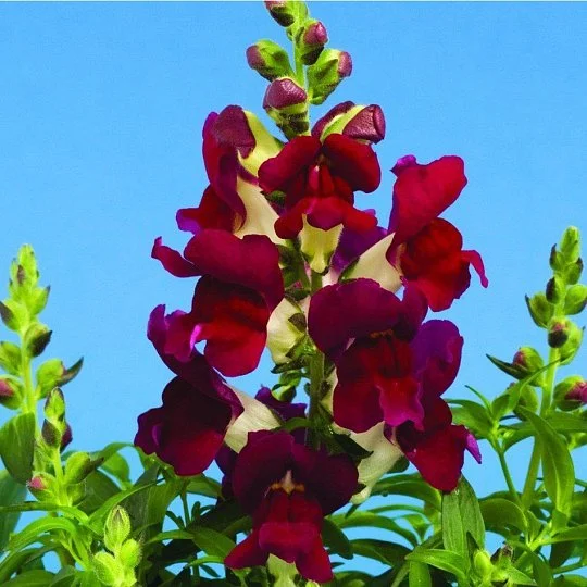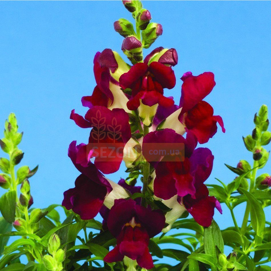 Антирінум (Левовий зів) Снептині (Antirrhinum majus (Snapdragon) Sneptini F1) Красива карликова, декоративна рослина. Кущ компактний, з підвищеним стеблеутворенням, другого і третього порядку, висотою досягає 20 см. Квіти великі, ароматні, двогубної форми, з красивим яскраво-червоним забарвленням. Листочки зелені ланцетоподібної форми. Довго і рясно квітуча рослина.