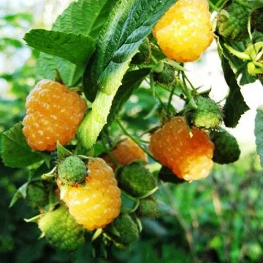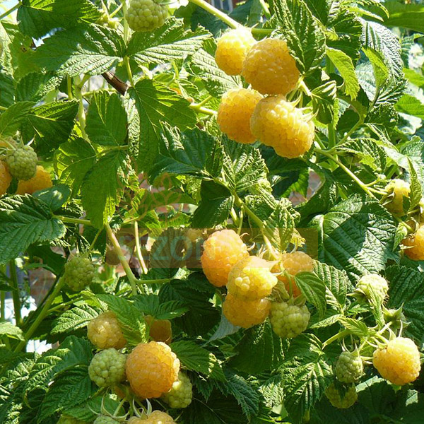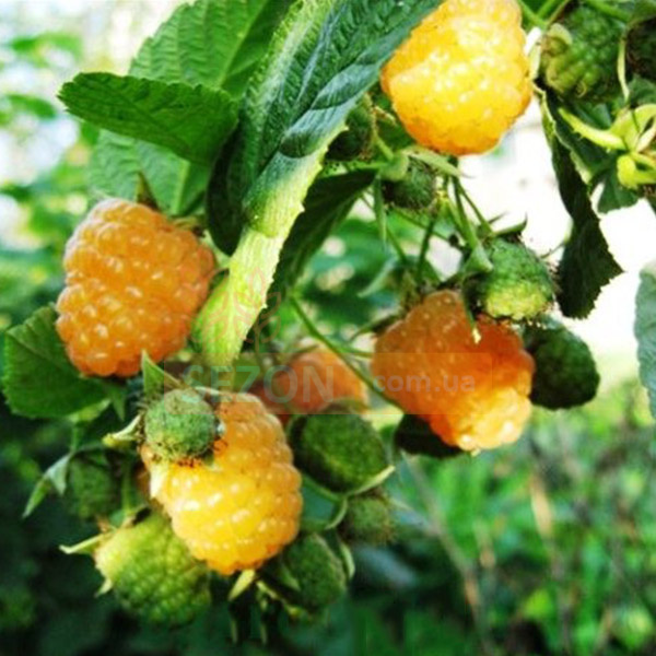 Жовтий гігант» – сорт, який повною мірою виправдовує свою назву. Кущ високий, стебла прямі з великою кількістю шпильок. Урожайність складає близько 3 кг з одного куща, а при належному догляді сягає 6 кг. Ягода велика: 4-6 г. Десертний сорт, соковита м'якоть, аромат дуже приємний. Плодоносить із середини літа до глибокої осені. Середньостійка до шкідників та захворювань, притаманних даної культури. До незначних мінусів можна віднести неможливість транспортування, жовта малина швидко втрачає товарний вигляд, тому у промислових фермерствах її не вирощують.
