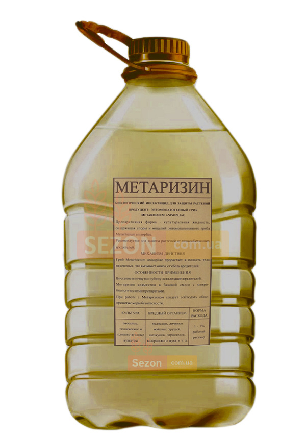 Метаризин - біопрепарат, рекомендований для захисту рослин від ґрунтомешкаючих шкідників (личинки колорадського і травневого жуків, капустянки, дротяника), а також як добрива та стимулятора росту. Препарат містить ентомопатогенні гриби Metarhizium anisopliae, що діють протягом декількох років після внесення. Перед посадкою картоплі роблять її обробку обприскуванням або замочуванням. При висадженні розсади її кореневу систему занурюють у розчин препарату чи поливають. У вегетативний період метаризин є ефективним проти трипсів, личинок довгоносиків молодого віку, а також личинок комарів.