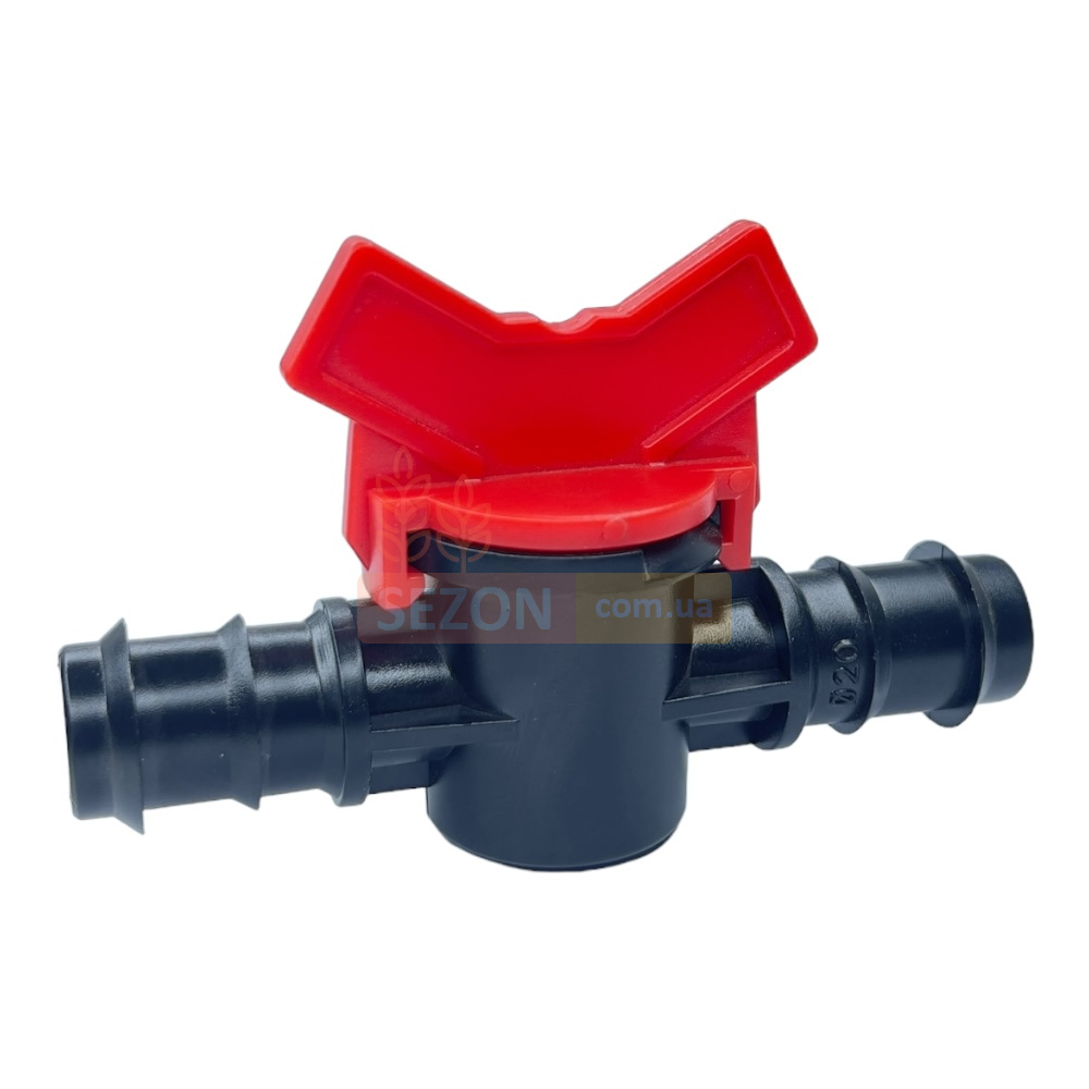 Кран прохідний застосовується для з'єднання/ремонту крапельної трубки діаметром 20 мм, з подальшою можливістю перекриття подачі води у вибраному ряді системи краплинного зрошення