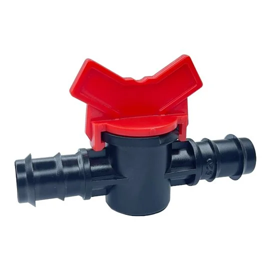 Миникран проходной трубка - трубка 20 мм: Этот миникран используется для соединения двух капельных трубок диаметром 20 мм. Он обеспечивает прочное и герметичное соединение, что особенно важно для эффективного распределения воды в системе полива.