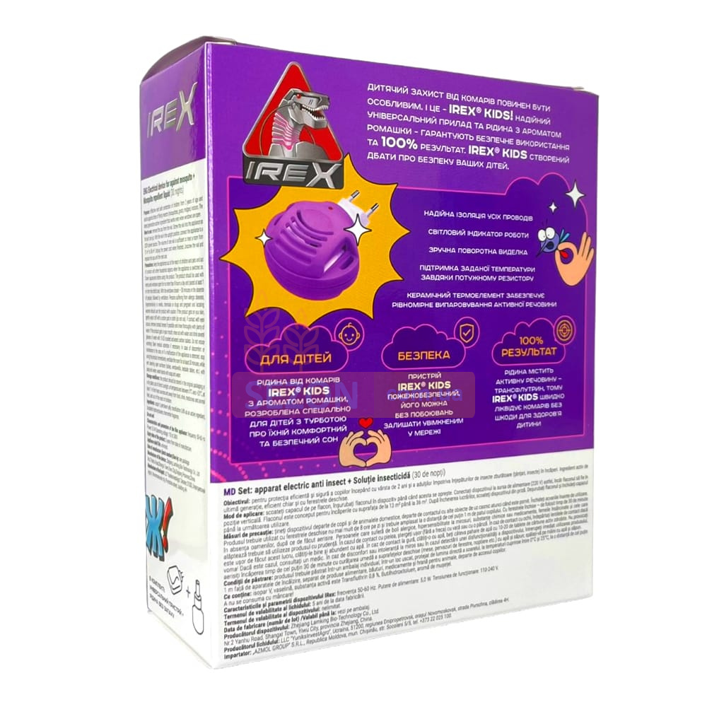 Фумігатор Irex® Kids — це спеціалізований засіб для захисту дітей від укусів комарів. Набір включає фумігатор і рідину з ароматом ромашки, розроблену з урахуванням особливостей дитячого організму. Пристрій забезпечує комфортний і безпечний сон дитини протягом усієї ночі, ефективно відлякуючи комарів і не викликаючи подразнень.