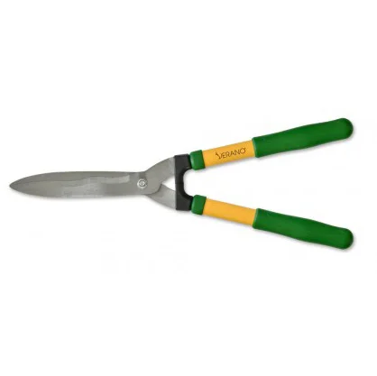 Эти садовые ножницы предназначены для обрезки побегов, молодых веток, кустов, травы и винограда. Ручки изготовлены из резины и алюминия, что обеспечивает надежное и комфортное сцепление во время работы. Лезвия выполнены из стали, при этом они имеют волнистую форму, что делает их уникальными и помогает в более точной и эффективной обрезке. Общая длина ножниц составляет 510 мм, что обеспечивает достаточную длину для работы с различными растениями. Это надежный и универсальный инструмент для профессиональных садовников и ландшафтных дизайнеров.
