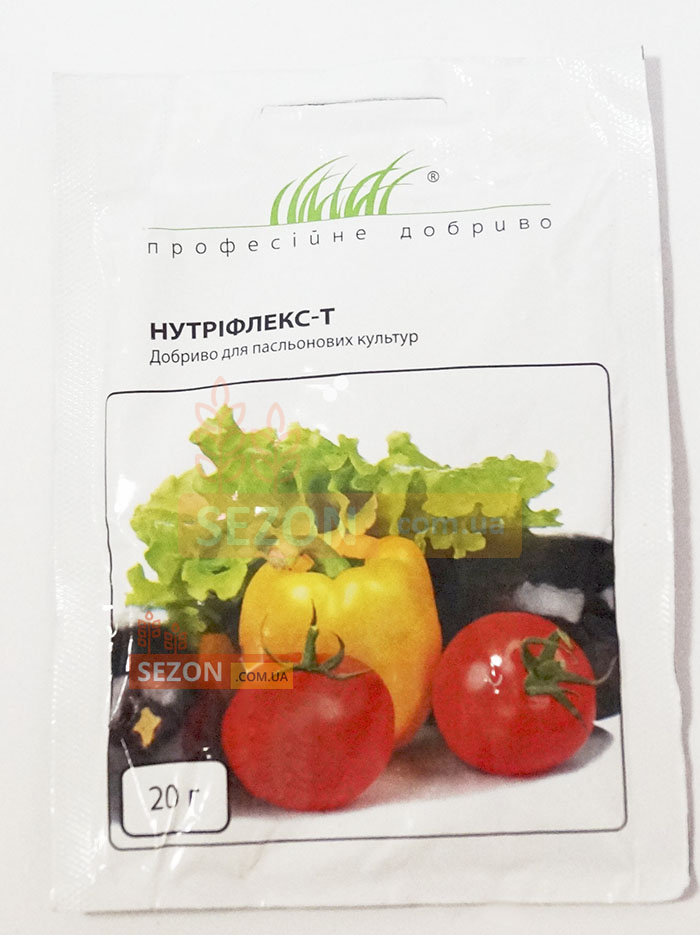 Комплексне добриво, призначене для додаткового підживлення пасльонових культур. Забезпечує повноцінне зростання та розвиток рослин, підвищує якість та кількість врожаю. Стимулює рясне цвітіння, запобігає опаданню зав'язей. Застосування: 20 г добрива розчинити у 10 л води. Розчином обприскувати культури, рівномірно розподіляючи розчин по всій вегетативної масі рослини, або поливати лунку для кореневого харчування. 10 л робочого розчину достатньо для обробки 100-150 м2
