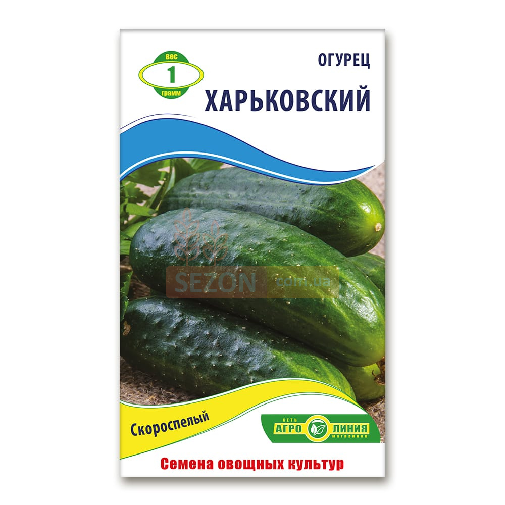 Огірок "Харківський" – скоростиглий сорт, який потішить вас своїм врожаєм вже через 42-50 днів після посадки. Плоди мають подовжено-овальну форму, рідкобугорчасту поверхню та характерне чорне опушення. Довжина зеленців варіюється від 8 до 14 см, маса – 70-110 г. Відрізняється високою товарністю та дружною віддачею врожаю, що робить його ідеальним для засолювання.