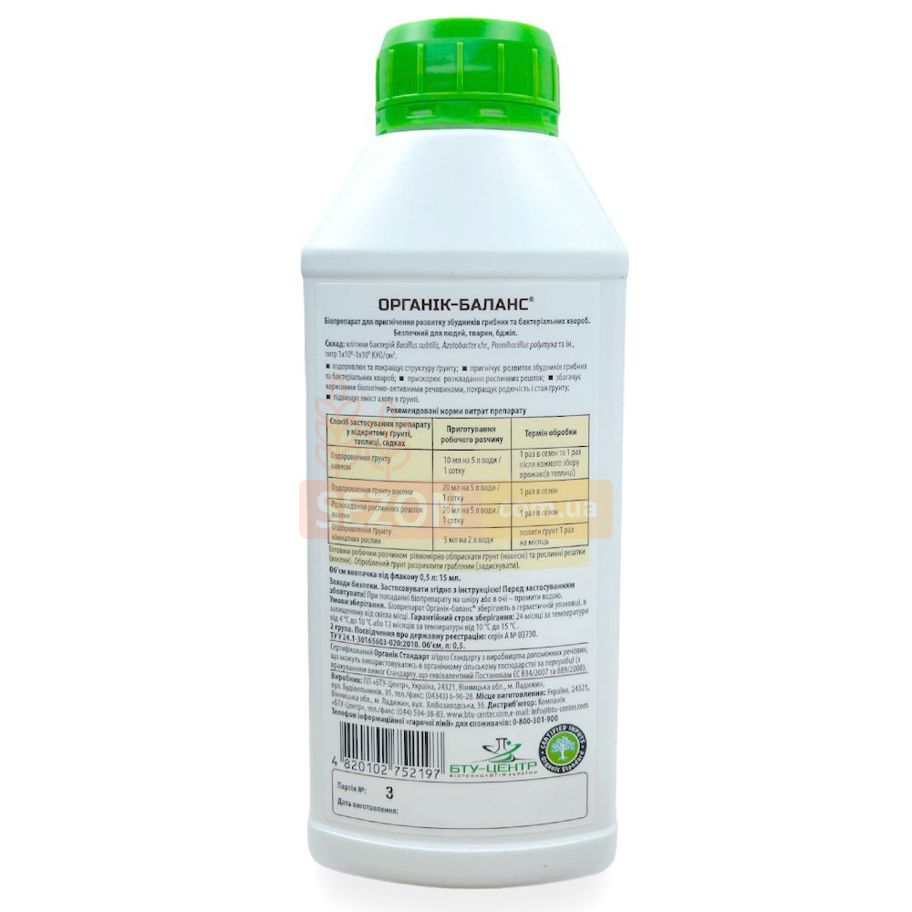 Біопрепарат Органік-Баланс® являє собою засіб системної дії, що складається з корисних мікроорганізмів-деструкторів, фіксаторів азоту та стабілізаторів фосфору. Агрономічно цінні мікроорганізми, що входять до його складу, більш потужні та активні, ніж ті, що мешкають у ґрунті, тому успішно справляються зі шкідниками та хворобами.