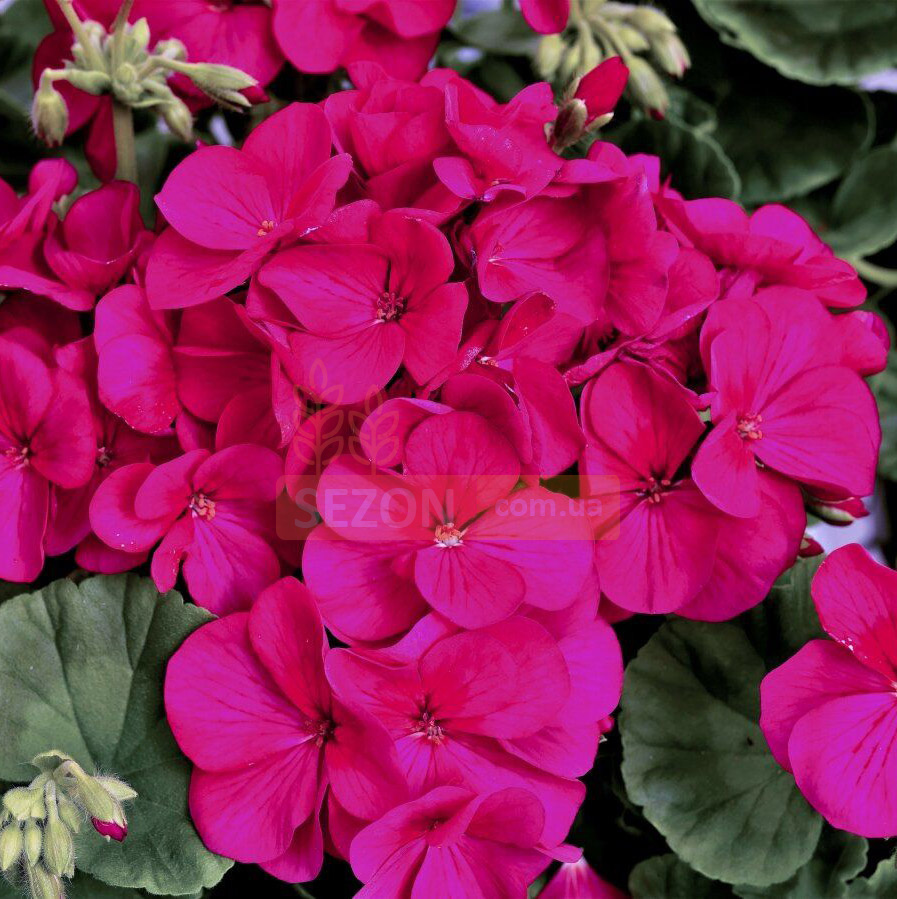 Пеларгонія садова мультиблум F1 (Pelargonium hortorum Multibloom F1). Найбільш швидко зростаюча, рання та компактна серія в порівнянні з іншими пеларгоніями, що існують на ринку. Дуже короткий період вирощування: після висадки у горщики 8-10 тижнів. Генетично компактні рослини легко вирощувати в горщиках 10,5 см. Неймовірно рясне цвітіння - 15-20 квітконосів на одній рослині. Ідеальна продукція для контейнерного озеленення.