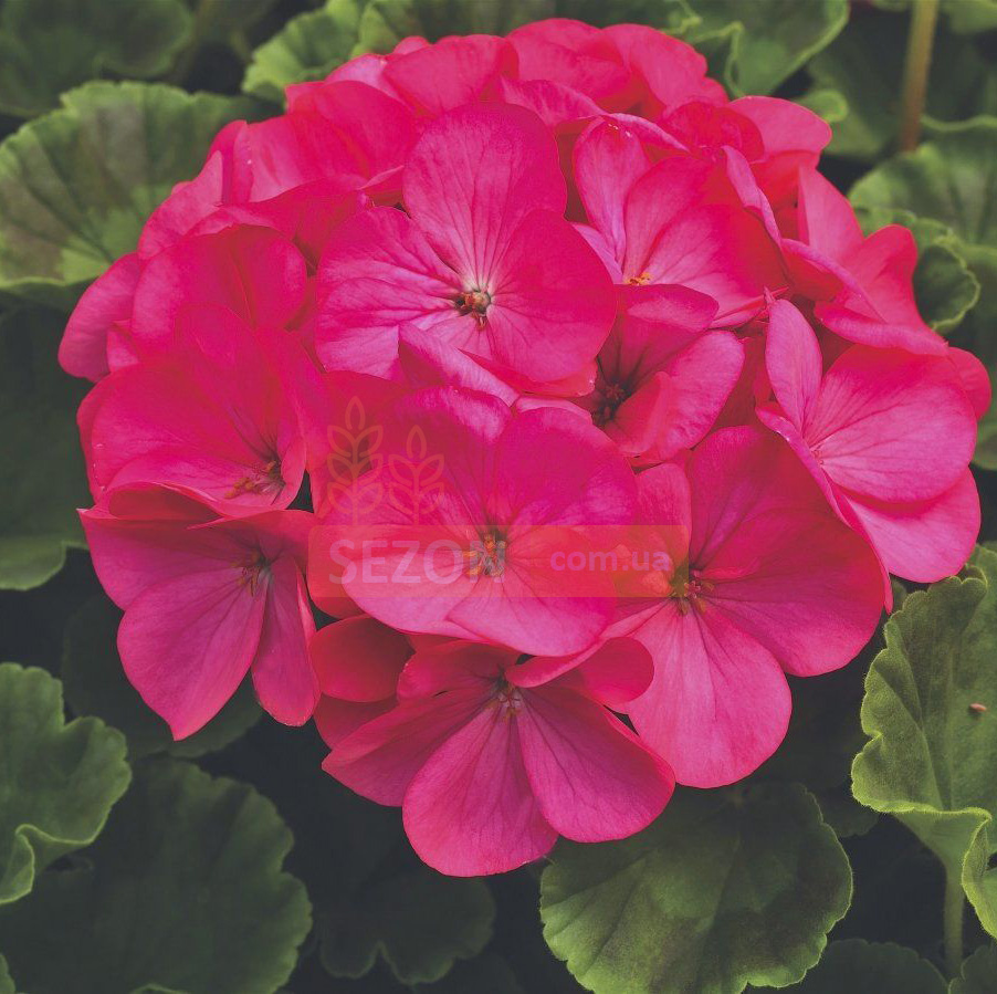 Пеларгонія садова Маверік F1 (Pelargonium hortorum Maverick F1). Найбільш сильноросла пеларгонія із насіння. Хороша вирівняність рослин по габітусу в середині серії. Раннє цвітіння в теплиці рослини практично не вимагають застосування ретардантів, але при цьому добре розростаються у відкритому ґрунті. Підходить для вирощування в горщиках діаметром 11-14 см за умов високої щільності культури. Квітконоси невисокі. Висота 35-40 см, ширина 30-35 см, термін вирощування після посадки у горщики 10-12 тижнів.