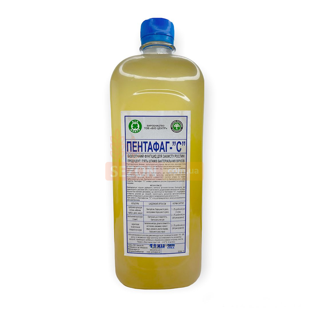 Біопрепарат має профілактичну та лікувальну дію проти бактеріозів плодових та овочевих культур (томати, огірки). Діюча речовина препарату Пентафаг С: віріони п'яти штамів бактеріальних вірусів плюс біологічно активні речовини. Застосування препарату покращує якість урожаю, призводить до пригнічення проявів бактеріального раку плодових, дірчастої плямистості кісточкових культур, а також бактеріальної плямистості та бактеріального раку томатів та незграбної плямистості огірків. Біопрепарат екологічно чистий, нешкідливий для людини та теплокровних тварин.