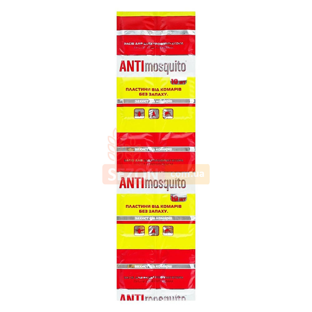 Пластини ANTImosquito — це ефективний засіб для використання в електричних фумігаторах, призначений для захисту від комарів у закритих приміщеннях. В одній упаковці міститься 10 пластин, кожна з яких забезпечує до 8 годин безперервного захисту на площі до 13 м².
