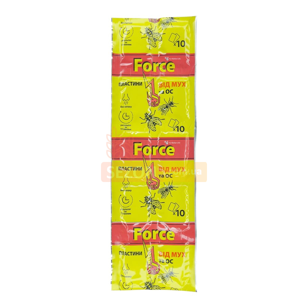 Вставьте пластину Force в рабочую зону фумигатора и подключите устройство к электросети 220 В. Пластина начинает испаряться под действием нагрева, распространяя инсектицид по комнате. Для максимальной эффективности используйте одну пластину на помещение площадью до 20 м². Замените пластину на новую после 10 часов непрерывной работы. Не оставляйте включённый фумигатор без присмотра.